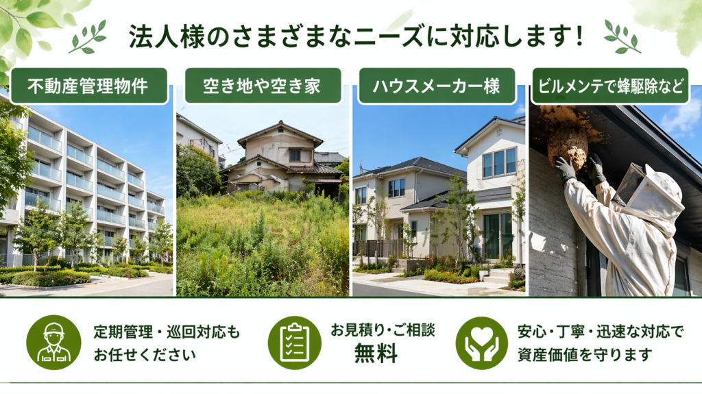 笑庭は「1本からでも承ります」と案内しており、剪定・伐採などお庭の小さなお困りごとにも対応しています。