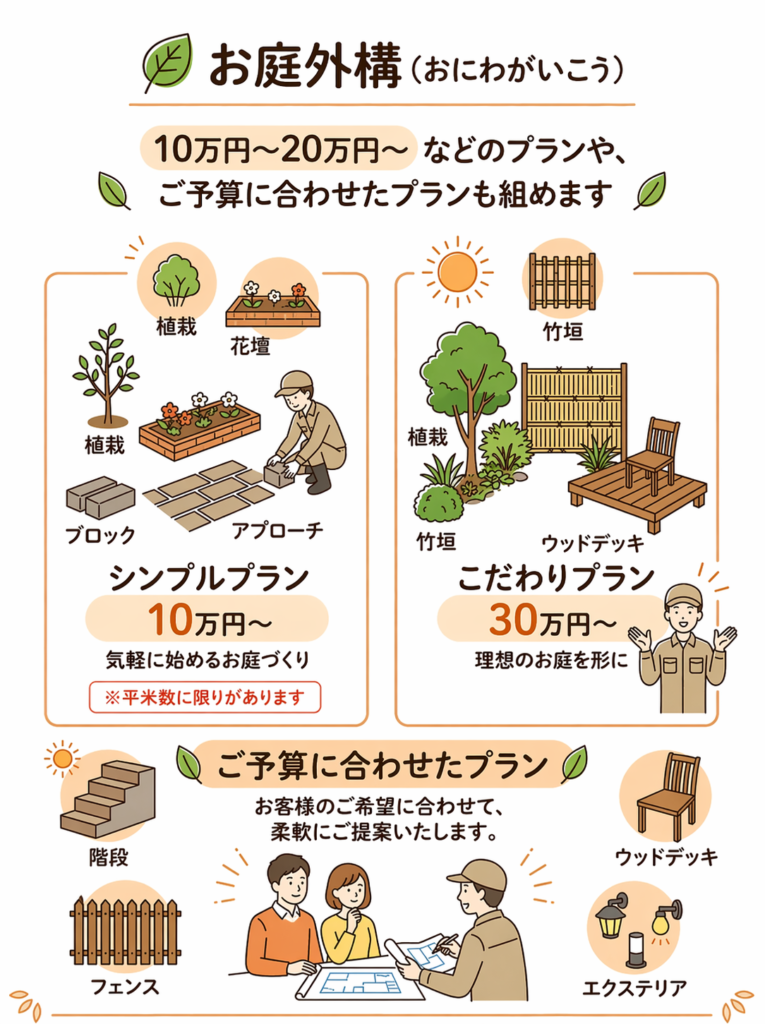 すぐにご依頼を決めていただかなくても問題ありません。まずはお庭の状態やご希望を確認し、内容に合わせてご案内いたします。