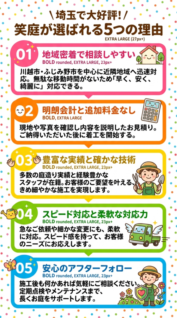 防草シート・人工芝の設置や外構工事まで、お庭に関するすべてが私たちの仕事です。