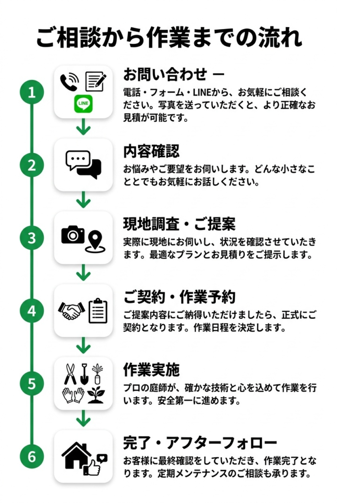庭木の剪定・伐採はもちろん、草刈り・雑草の処理や消毒、